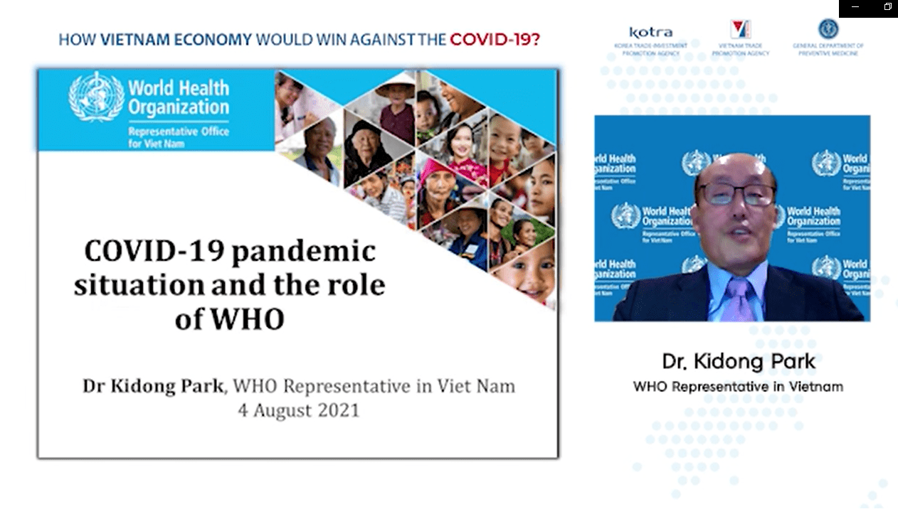 Đặc biệt, Hội thảo có sự tham gia của Tiến sĩ Kidong Park – Trưởng đại diện Tổ chức Y tế Thế giới (WHO) tại Việt Nam thông tin về tình hình dịch bệnh Covid trên thế giới và tại Việt Nam. Tiến sĩ Kidong Park đánh giá cao công tác chống dịch của Việt Nam và đang đi đúng hướng, đồng thời đưa ra các khuyến nghị, giải pháp giúp các 66Win33 tặng code miễn phí Hàn Quốc thực hiện duy trì hệ thống sản xuất an toàn tại Việt Nam trên cơ sở tuân thủ đầy đủ các quy định của Chính quyền Trung ương, Bộ Y tế và các địa phương Việt Nam.