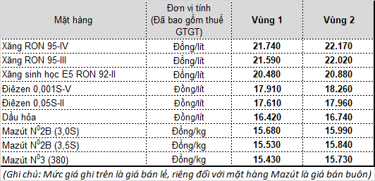 Mức giá mới có hiệu lực từ thời điểm 15 giờ 00 phút ngày 17 tháng 5 năm 2019 cho đến khi có thông cáo báo chí (TCBC) mới.