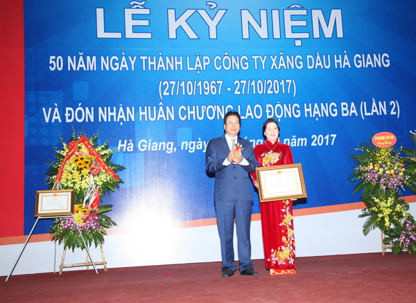 Sáng 27/10/2017, tại Hội trường HĐND, UBND tỉnh Hà Giang, Công ty Xăng dầu Hà Giang (Petrolimex Hà Giang) long trọng tổ chức Lễ kỷ niệm 50 năm ngày thành lập (27/10/1967 - 27/10/2017) và vinh dự đón nhận Huân chương Lao động hạng Ba (lần 2).