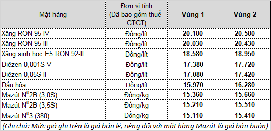 Mức giá mới có hiệu lực từ thời điểm 17 giờ 00 phút ngày 02 tháng 4 năm 2019 cho đến khi có thông cáo báo chí (TCBC) mới.