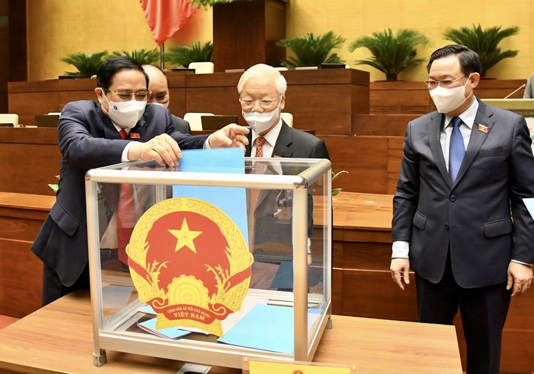 Sau khi 2 Nghị quyết được thông qua, Thủ tướng Chính phủ, các Phó Thủ tướng Chính phủ và các thành viên Chính phủ nhiệm kỳ 2021-2026 đã ra mắt Quốc hội./.