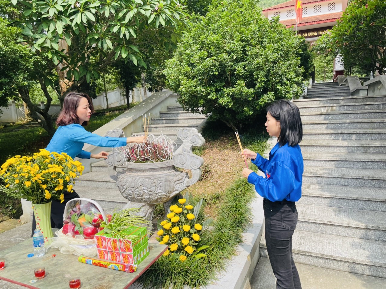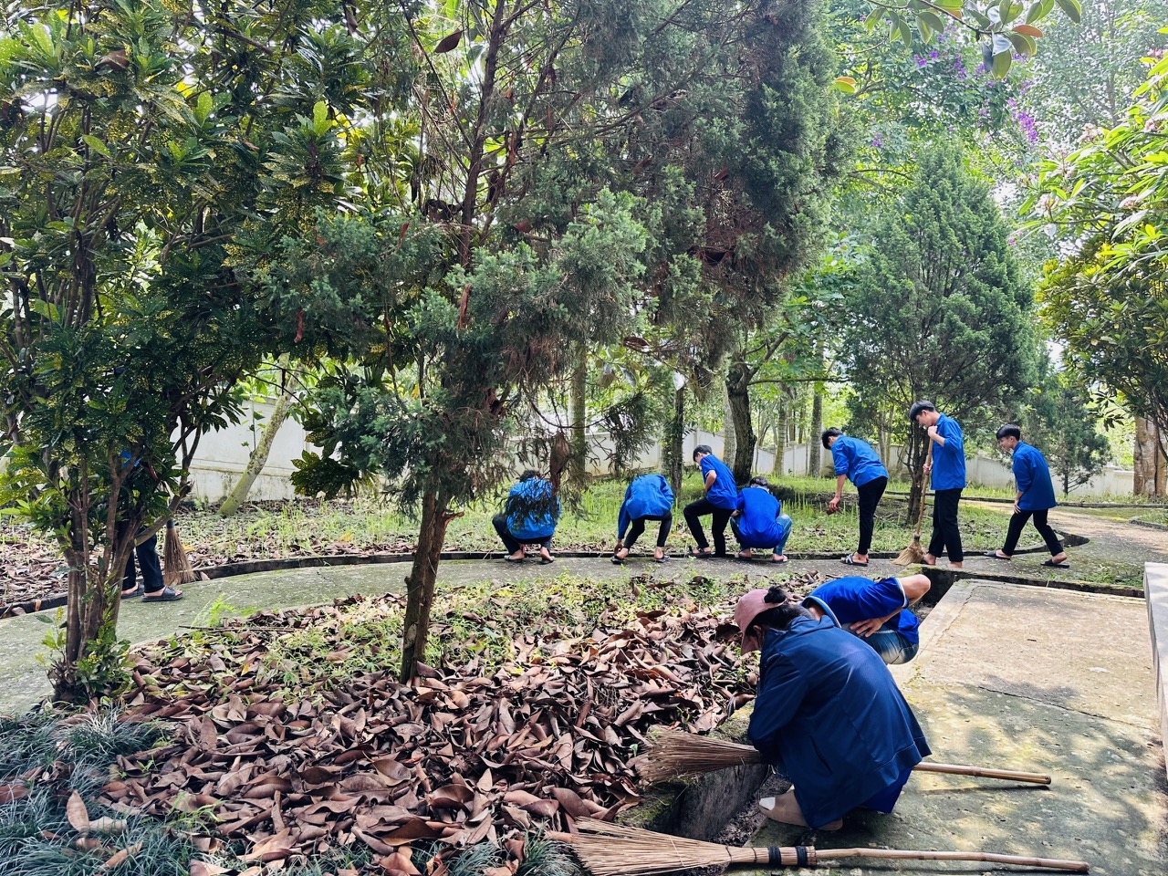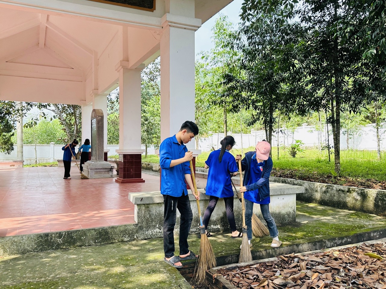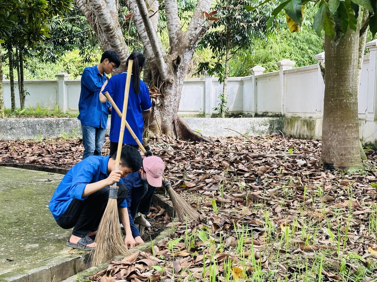 Các đoàn viên, thanh niên tham gia dọn dẹp vệ sinh tại Khu di tích