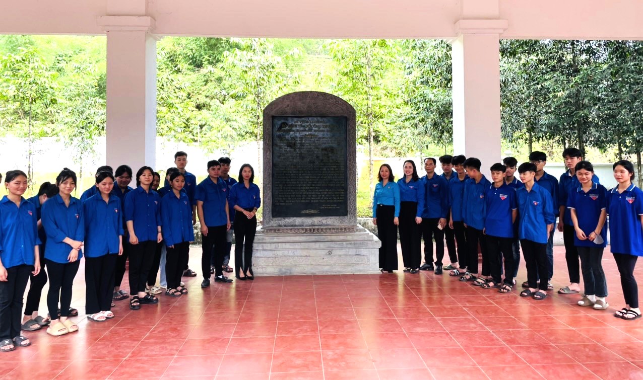 Các đoàn viên, thanh niên tìm hiểu tại Bia tưởng niệm của khu di tích