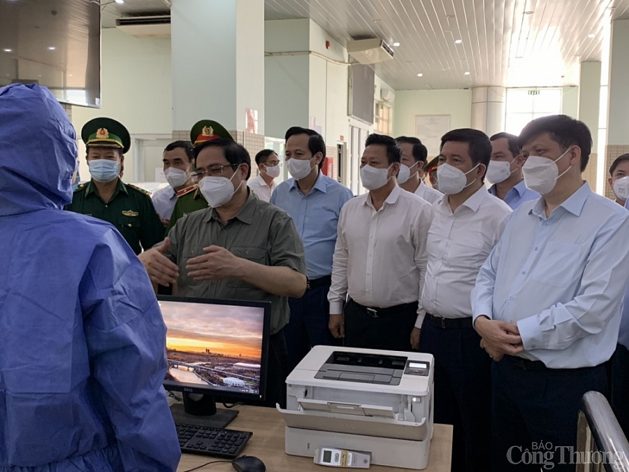 Thủ tướng đã đi thăm, kiểm tra Trung tâm Kiểm soát bệnh tật (CDC) Tây Ninh, Bệnh viện Lao và Bệnh phổi tỉnh đang điều trị các bệnh nhân COVID-19 và cửa khẩu quốc tế Mộc Bài.