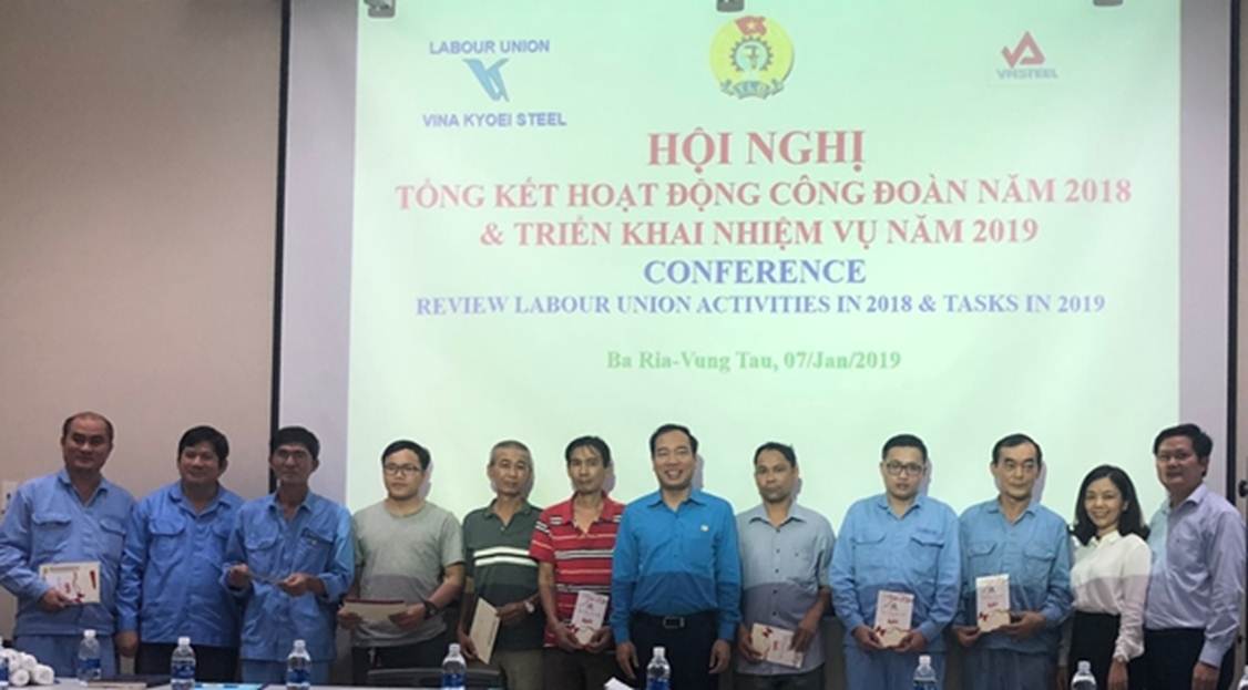 Nhằm hướng về đoàn viên Công đoàn nhân dịp Tết Nguyên đán Kỷ Hợi - 2019, Công đoàn Công Thương Việt Nam đã đến thăm, chúc Tết và trao quà Tết cho tập thể và NLĐ đang làm việc tại Công đoàn Công ty Thép Vinakyoei với trị giá 3 triệu đồng và trao 05 suất quà (trị giá 500.000đ/suất), đồng thời Công đoàn Công Thương Việt Nam hỗ trợ 35 suất quà cho người lao động có hoàn cảnh đặc biệt khó khăn tại các đơn vị trong Tổng công ty với tổng số tiền là 40 triệu đồng và bàn giao 01 nhà “Mái ấm Công đoàn” cho người lao động (trị giá 30 triệu đồng/1 nhà) và 01 phần quà vào nhà mới 3 triệu đồng.