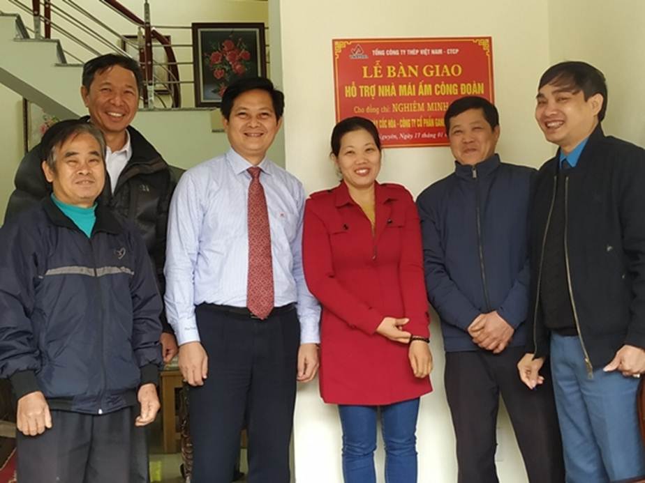 Trao tặng 08 căn nhà “Mái ấm Công đoàn” cho CNVC - LĐ có hoàn cảnh đặc biệt khó khăn về nhà ở tại Công ty CP Gang Thép Thái Nguyên, Công ty TNHH Natsteelvina, Công ty TNHH Ống Thép Việt Nam và Công ty CP Thép Tây Đô với tổng trị giá 400 triệu đồng (50 triệu đồng/nhà) từ nguồn Xã hội từ thiện Tổng công ty. Tại buổi trao nhà, Công đoàn Tổng công ty cũng đã tặng 8 phần quà vào nhà mới với giá trị 8 triệu đồng (1triệu đồng/nhà).