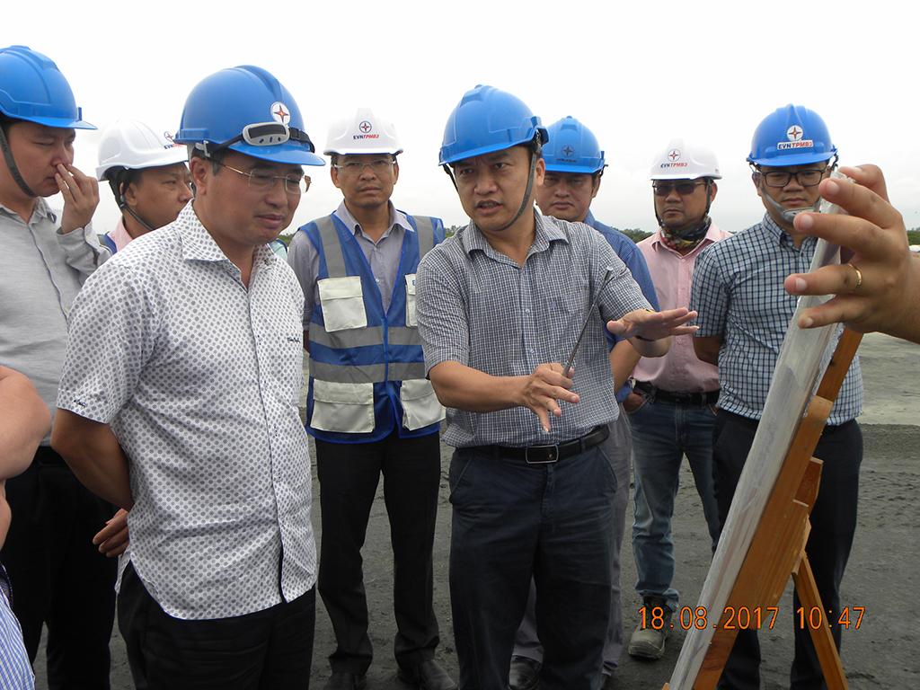 Thứ trưởng Hoàng Quốc Vượng (người đầu tiên, từ trái sang) kiểm tra tình hình các dự án tại Trung tâm Điện lực Duyên Hải ngày 18/8