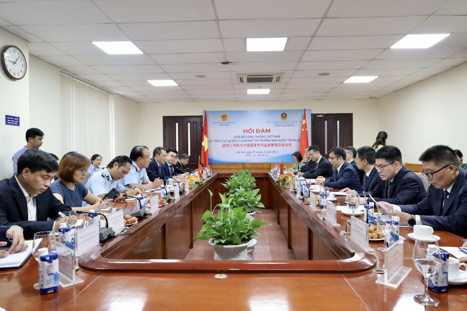 Buổi làm việc diễn ra trong bầu không khí hữu nghị, chân thành, cởi mở và đầy thiện chí. Hai Bên đã trao đổi và đạt được nhất trí trong nhiều nội dung hợp tác cụ thể và biện pháp thiết thực nhằm triển khai có hiệu quả trong cơ chế hợp tác quản lý giám sát thị trường.