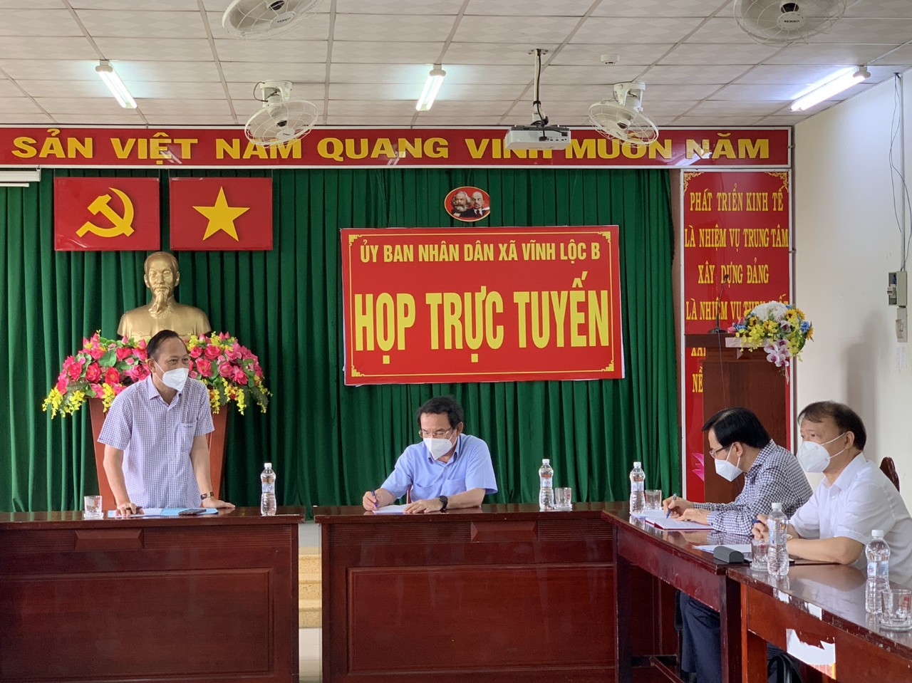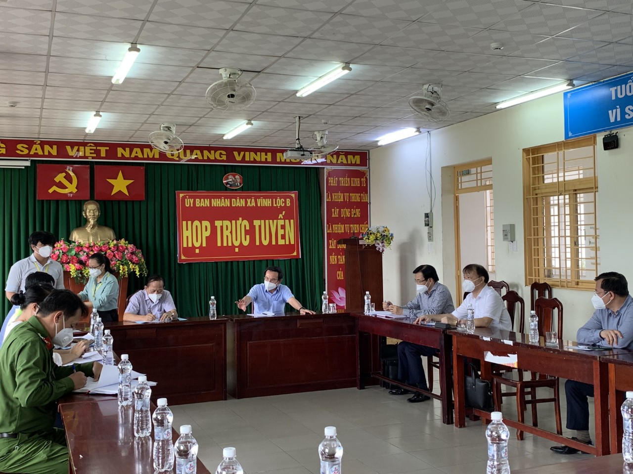 Đến thăm và động viên Tổ Covid cộng đồng tại tổ 8, ấp 6B, xã Vĩnh Lộc A. Tại đây, đại diện Tổ Covid cộng đồng cho biết: Các thành viên trong tổ đã phân chia ngay kiểm tra không cho người lạ vào khu vực; giao nhận hàng hoá tại nơi chốt trực. Bên cạnh đó, vận động công nhân lao động ở trọ ý thức tự bảo vệ mình, gia đình và cộng đồng; tuyên truyền vận động công nhân lao động ở trọ thực hiện nghiêm các chỉ thị về phòng chống dịch.