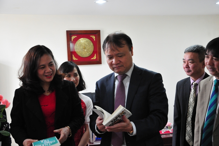 Giám đốc Nguyễn Minh Huệ giới thiệu những ấn phẩm của Nhà xuất bản Công Thương với Thứ trưởng Đỗ Thắng Hải
