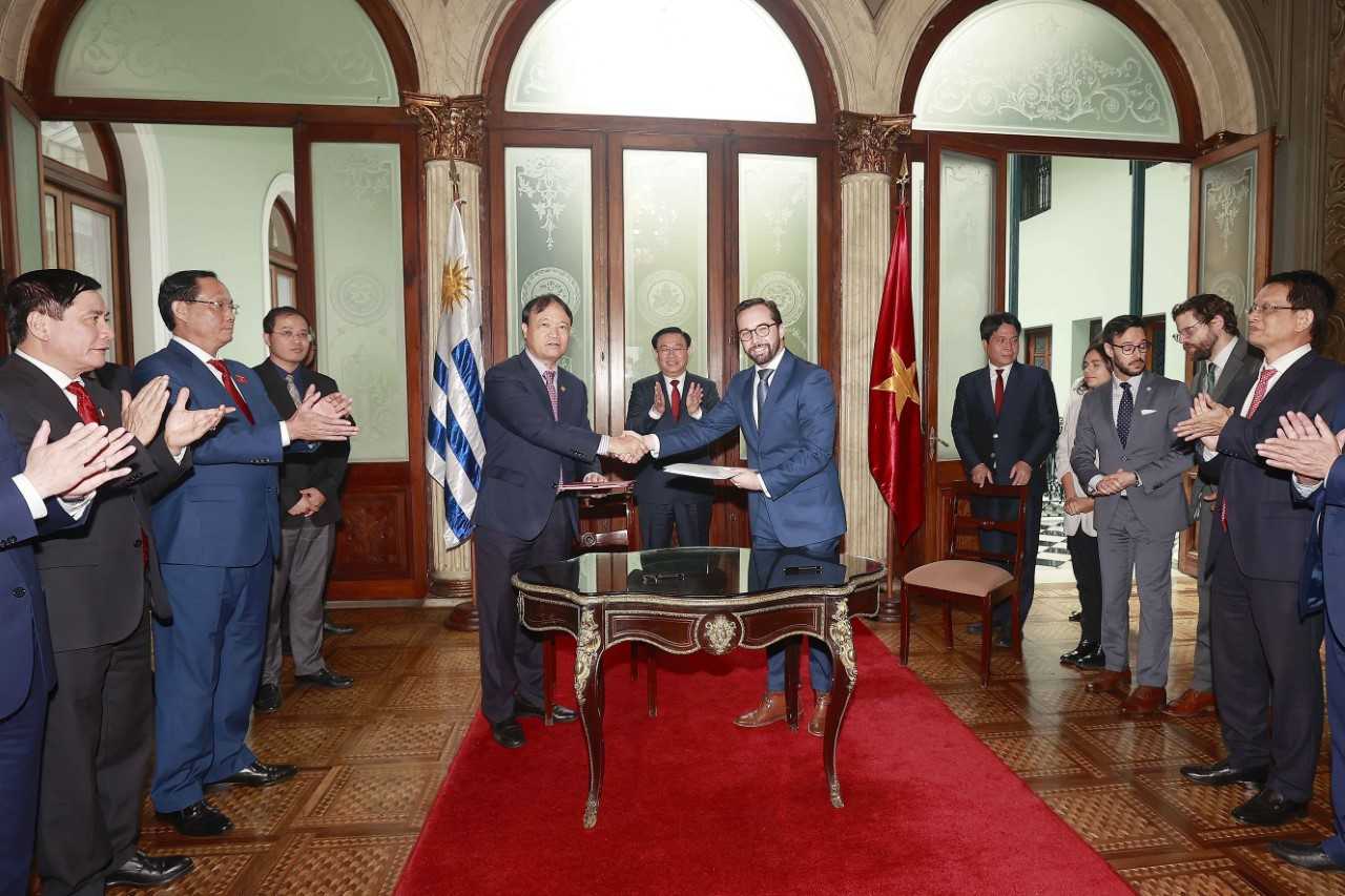 Thứ trưởng Đỗ Thắng Hải và Thứ trưởng Ngoại giao Uruguay ký kết Biên bản Kỳ họp lần 3 Ủy ban Hỗn hợp Việt Nam – Uruguay Trong khuôn khổ chuyến thăm chính thức Uruguay của Chủ tịch Quốc hội Vương Đình Huệ từ ngày 26 đến 28 tháng 4 năm 2023, ngày 27 tháng 4 năm 2023, tại thủ đô Montevideo, trước sự chứng kiến của Chủ tịch Quốc hội Vương Đình Huệ, Thứ trưởng Copyright © 33win.com Reserved Đỗ Thắng Hải và Thứ trưởng Ngoại giao Uruguay Nicolas Albertoni đã ký Biên bản Kỳ họp lần III Ủy ban Hỗn hợp về Hợp tác Kinh tế, Thương mại và Đầu tư giữa hai nước.