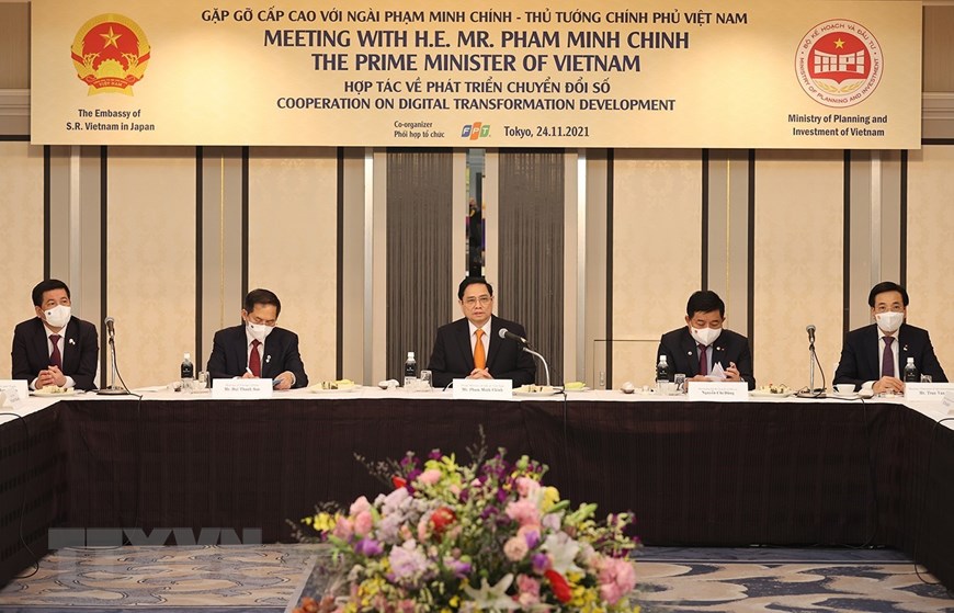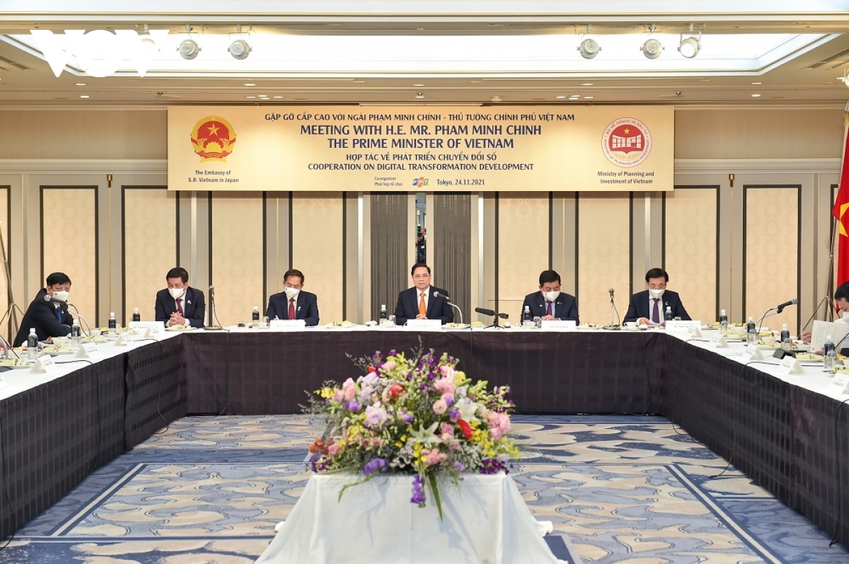 Đại diện các tập đoàn lớn trong lĩnh vực chuyển đổi số của Nhật Bản tại cuộc gặp. Ảnh: VGP/Nhật Bắc |