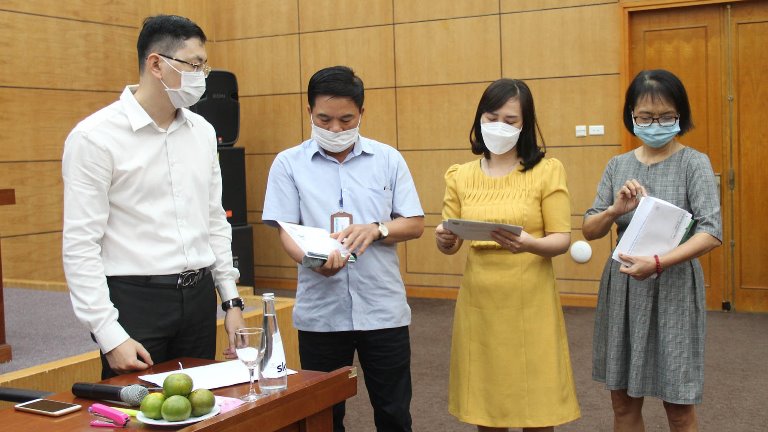 Phó Chủ tịch Hiệp hội Mía Đường Việt Nam, Tổng Thư ký Hiệp hội Sữa Việt Nam và đại diện Công ty CP Mía đường Lam Sơn kiểm tra tính nguyên vẹn của hồ sơ các thương nhân tham gia Phiên đấu giá