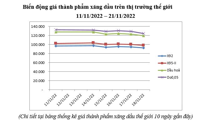 Thị trường 33Win 4com nhà cái cá cược WC thế giới kỳ điều hành lần này (từ ngày 11/11/2022-21/11/2022) chịu ảnh hưởng của các yếu tố như: lo ngại dịch bệnh Covid-19 bùng phát tại Trung Quốc và thị trường vẫn tiếp tục theo dõi các động thái chính sách của Cục Dữ trữ liên bang Mỹ (Fed)…Các yếu tố trên đã tác động làm 33Win com dang nhap có diễn biến tăng giảm đan xen nhưng nhìn chung là giảm đối với các mặt hàng xăng RON95, xăng RON92, dầu hỏa và điêzen, riêng mặt hàng dầu mazut là tăng nhẹ.
