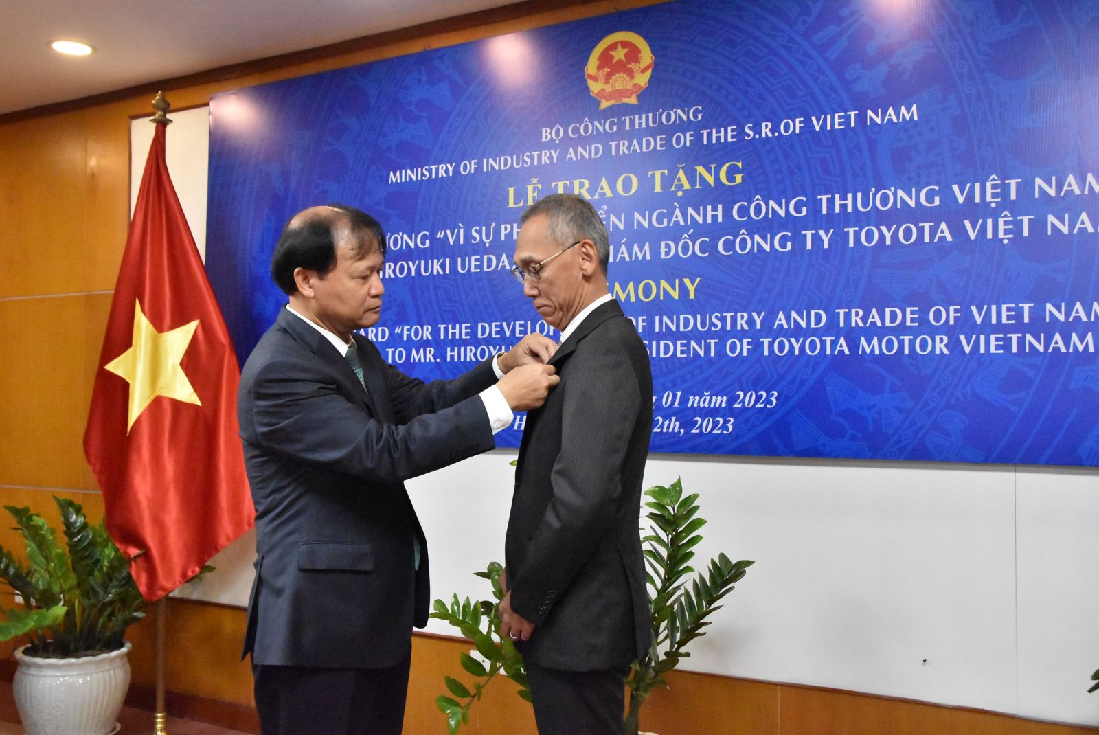 Thứ trưởng Đỗ Thắng Hải trao Kỷ niệm chương ngành Công Thương cho Tổng giám đốc Công ty Ô tô Toyota Việt Nam