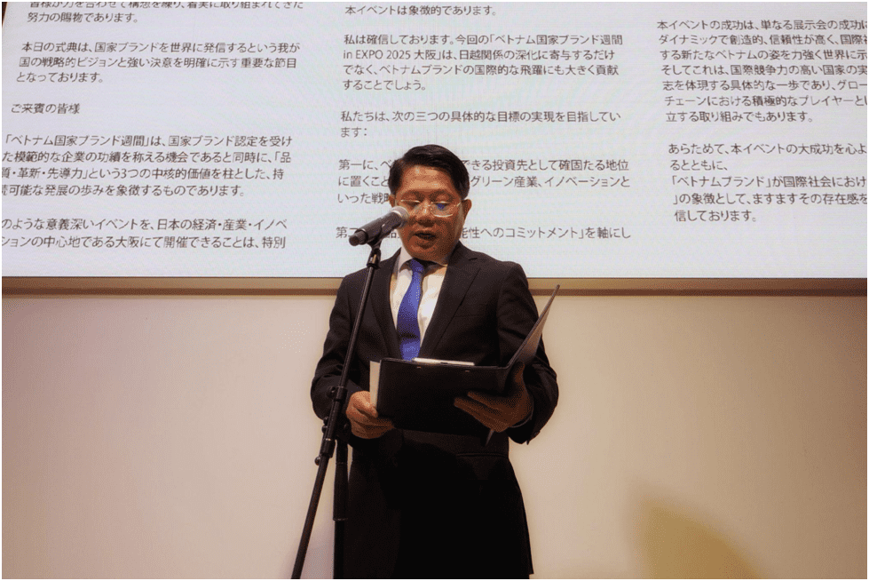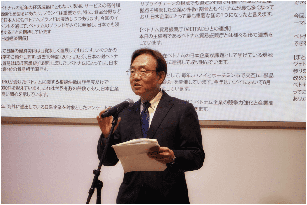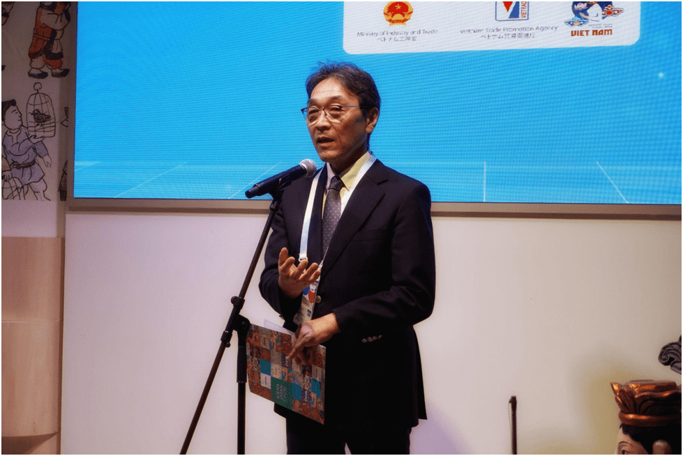 Ông Makoto Maehara – Giám đốc Phòng Quan hệ Quốc tế, Cục Kinh tế, Thương mại và Công nghiệp vùng Kansai (METI Nhật Bản) phát biểu tại buổi lễ