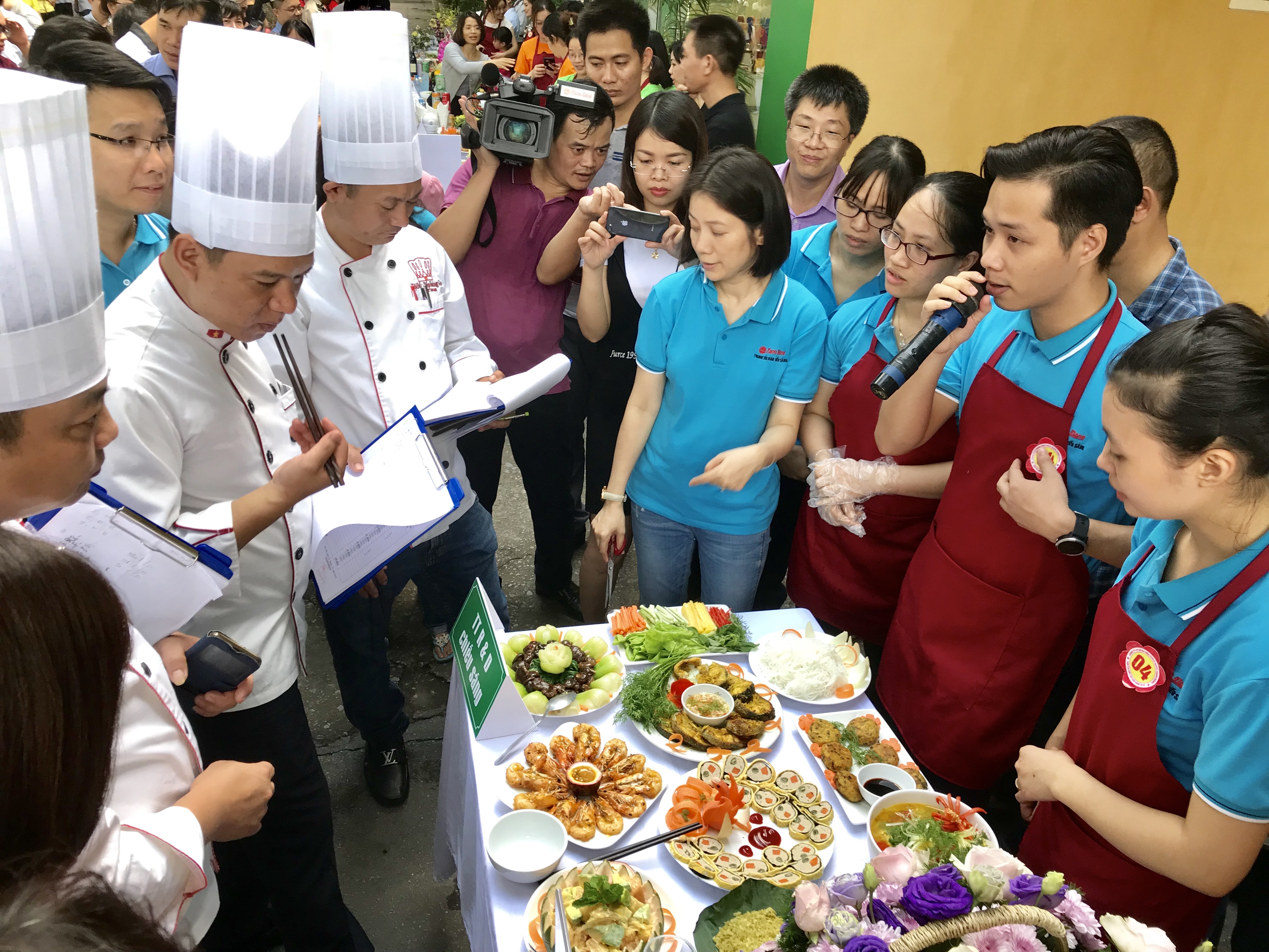 Các đội thi thuyết trình mâm cỗ trước Ban giám khảo