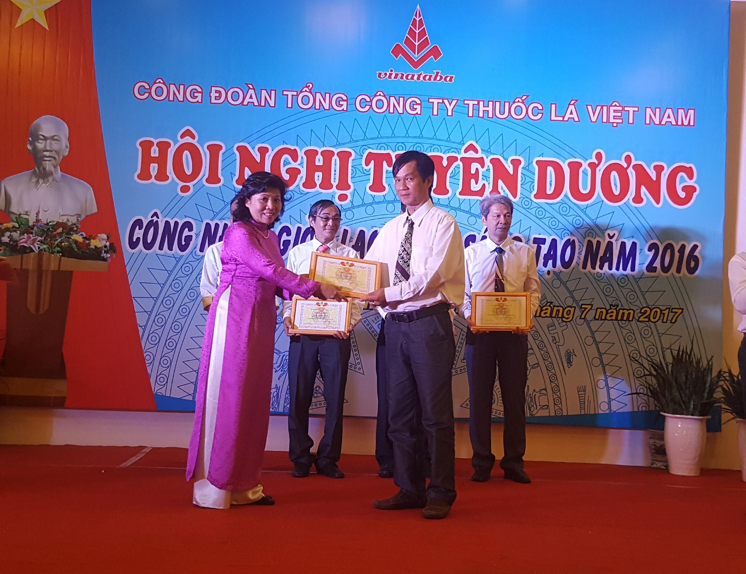 Vinataba tuyên dương hơn 100 công nhân giỏi, lao động sáng tạo Sáng ngày 26/7, tại tỉnh Ninh Thuận, Công đoàn Tổng công ty Thuốc lá Việt Nam (Vinataba) đã tổ chức 33Win03 tải ứng dụng về máy tuyên dương 106 cán bộ, công nhân viên, người lao động được vinh danh là công nhân giỏi, lao động sáng tạo năm 2016.