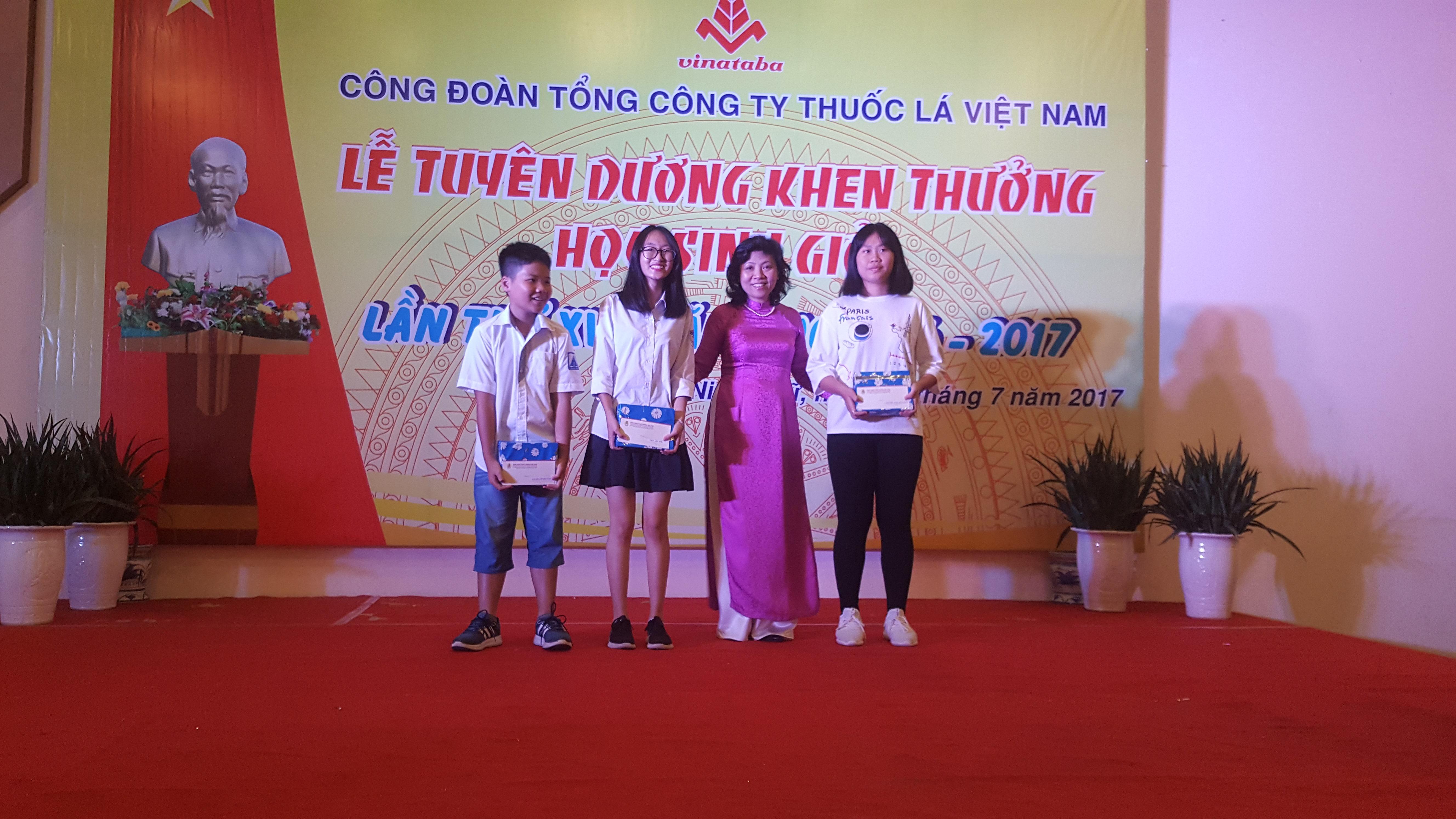 Cũng trong buổi sáng ngày 26/7, Công đoàn Tổng công ty Thuốc lá Việt Nam đã tuyên dương 103 các cháu học sinh là con của cán bộ công nhân viên chức, người lao động thuộc 18 đơn vị của Tổng công ty đã đạt thành tích cao trong các kỳ thi học sinh giỏi cấp 33Win60 khuyến mãi hấp dẫn, trung ương và cấp tỉnh, thành phố năm học 2016-2017.