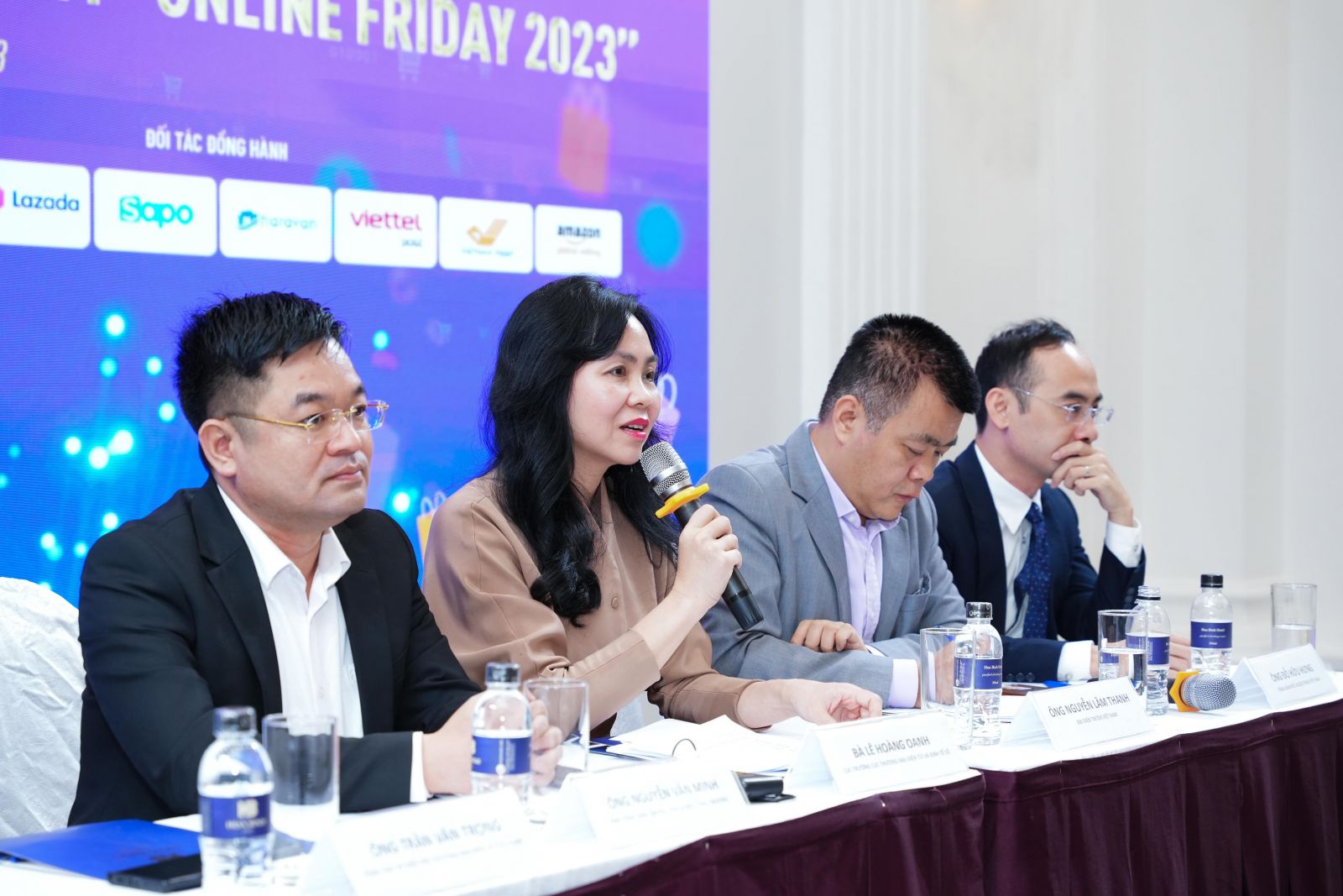 Cục trưởng Cục Thương mại điện tử và Kinh tế số Lê Hoàng Oanh chia sẻ tại Họp báo