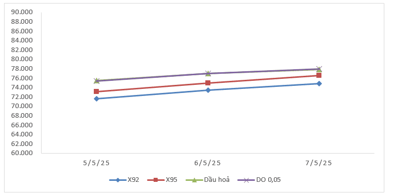 Bình quân giá thành phẩm 33Win 4com nhà cái cá cược WC thế giới giữa kỳ điều hành giá ngày 05/5/2025 và kỳ điều hành ngày 08/5/2025 là: 73,280 USD/thùng xăng RON92 dùng để pha chế xăng E5RON92 (giảm 1,965 USD/thùng, tương đương giảm 2,61%); 74,863 USD/thùng xăng RON95 (giảm 1,985 USD/thùng, tương đương giảm 2,58%); 76,780 USD/thùng dầu hỏa (giảm 3,368 USD/thùng, tương đương giảm 4,20%); 76,770 USD/thùng dầu điêzen 0,05S (giảm 2,950 USD/thùng, tương đương giảm 3,70%); 405,157 USD/tấn dầu mazut 180CST 3,5S (giảm 22,473 USD/tấn, tương đương giảm 5,26%).