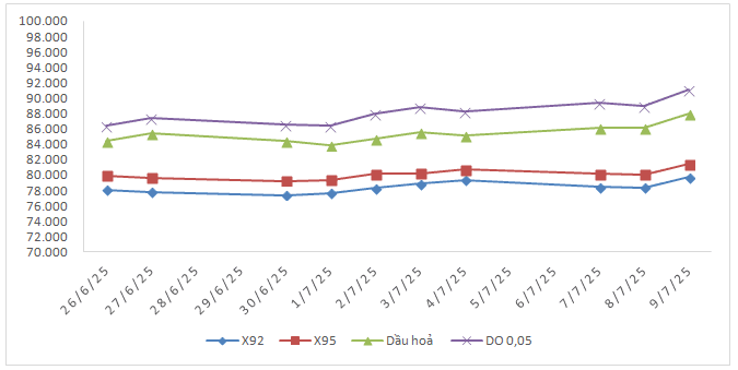 Bình quân giá thành phẩm 33Win 4com nhà cái cá cược WC thế giới giữa kỳ điều hành giá ngày 03/7/2025 và kỳ điều hành ngày 10/7/2025 là: 78,914 USD/thùng xăng RON92 dùng để pha chế xăng E5RON92 (tăng 1,088 USD/thùng, tương đương tăng 1,40%); 80,472 USD/thùng xăng RON95 (tăng 0,850 USD/thùng, tương đương tăng 1,07%); 86,198 USD/thùng dầu hỏa (tăng 1,620 USD/thùng, tương đương tăng 1,92%); 89,298 USD/thùng dầu điêzen 0,05S (tăng 2,366 USD/thùng, tương đương tăng 2,72%); 418,920 USD/tấn dầu mazut 180CST 3,5S (giảm 1,844 USD/tấn, tương đương giảm 0,44%).