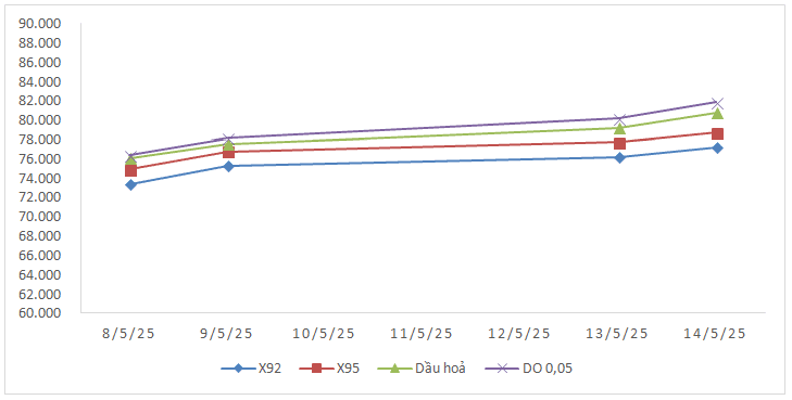 Bình quân giá thành phẩm 33Win 4com nhà cái cá cược WC thế giới giữa kỳ điều hành giá ngày 08/5/2025 và kỳ điều hành ngày 15/5/2025 là: 75,493 USD/thùng xăng RON92 dùng để pha chế xăng E5RON92 (tăng 2,213 USD/thùng, tương đương tăng 3,02%); 76,993 USD/thùng xăng RON95 (tăng 2,130 USD/thùng, tương đương tăng 2,85%); 78,380 USD/thùng dầu hỏa (tăng 1,600 USD/thùng, tương đương tăng 2,08%); 79,113 USD/thùng dầu điêzen 0,05S (tăng 2,343 USD/thùng, tương đương tăng 3,05%); 426,983 USD/tấn dầu mazut 180CST 3,5S (tăng 21,826 USD/tấn, tương đương tăng 5,39%).