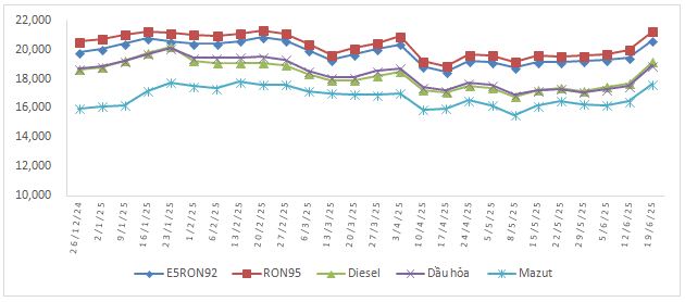 - Xăng RON95-III: không cao hơn 21.244 đồng/lít (tăng 1.277 đồng/lít so với giá cơ sở hiện hành);