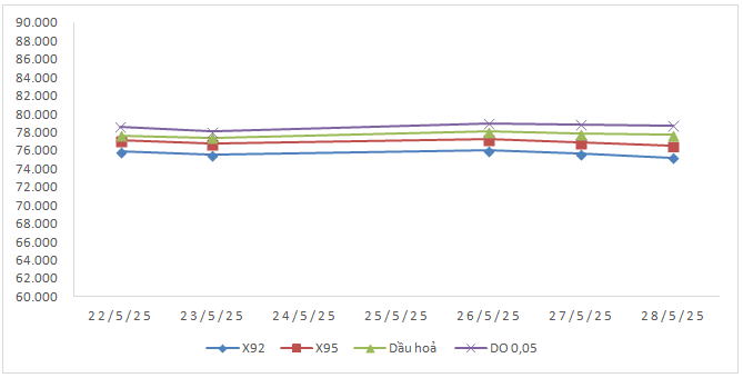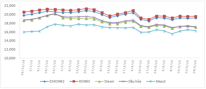 - Dầu diesel 0.05S: không cao hơn 17.136 đồng/lít (giảm 269 đồng/lít so với giá cơ sở hiện hành);