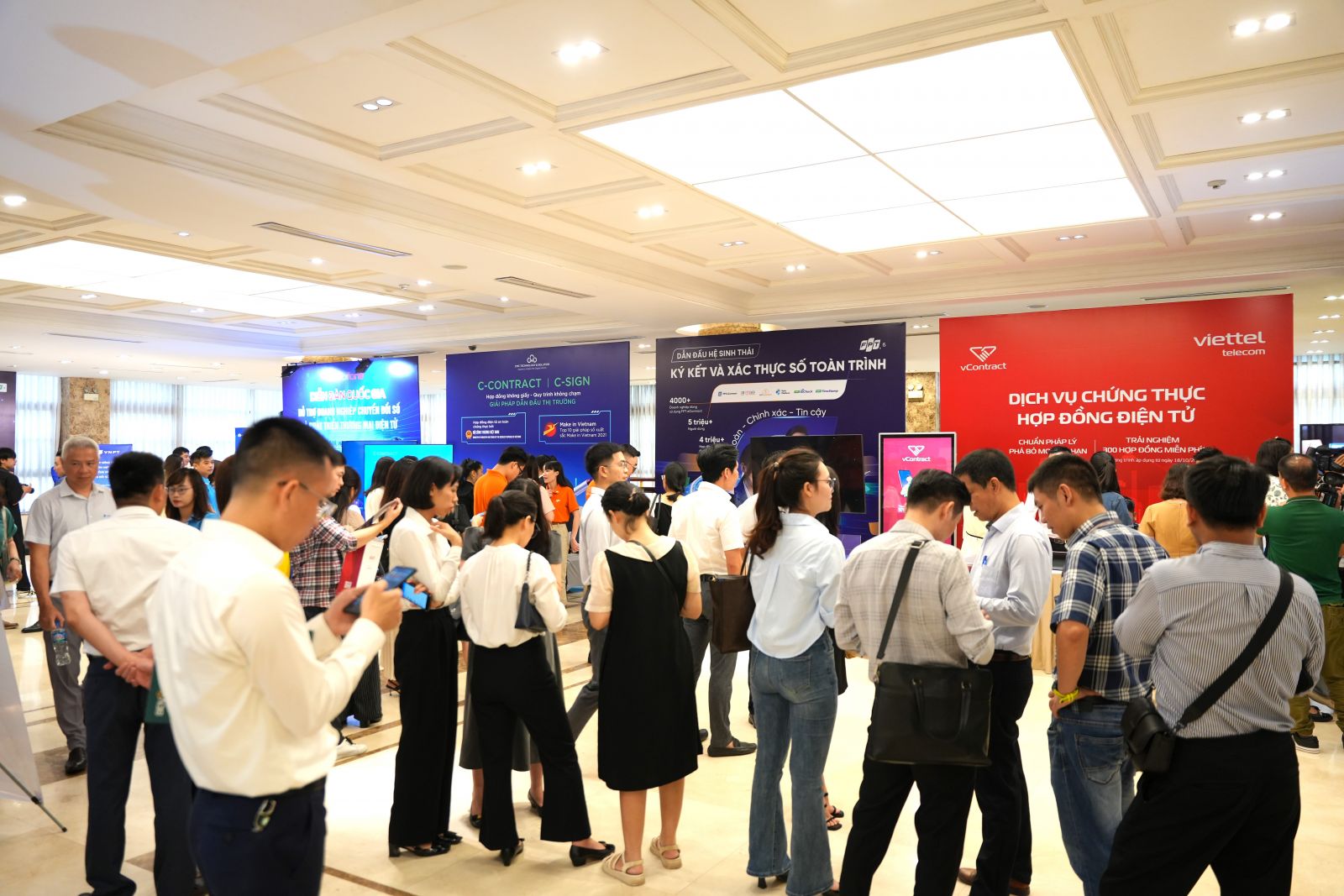 Gian hàng của FPT thu hút nhiều khách tham quan nhờ các giải pháp tự động hóa quy trình và hợp đồng điện tử hiện đại