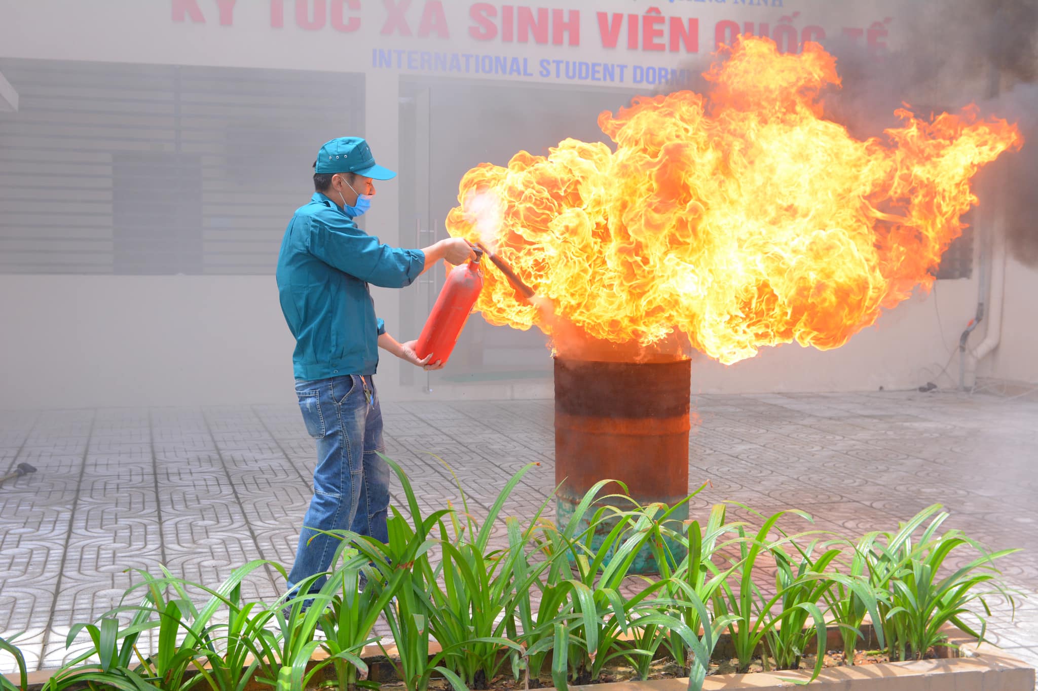 Thực hiện chương trình diễn tập, lực lượng cảnh sát PCCC- CNCH công anh tỉnh Quảng Ninh, công an thị xã Đông Triều, lực lượng PCCC - CNCH của Nhà trường và học sinh sinh viên đã được diễn tập tình huống tại khu KTX sinh viên quốc tế của Nhà trường, thực hành chữa cháy như: dùng bình bột chữa cháy khay xăng, triển khai chữa cháy bằng bọng nước cứu hoả, sơ cứu người bị nạn, cứu hộ cứu nạn cho các nạn nhân, xử lý đúng cách khi không có dụng cụ y tế hỗ trợ, sơ tán người mắc kẹt trong đám cháy, cứu tài sản từ trong đám cháy, thông gió hành lang, cầu thang, triển khai thang dây, dây hạ chậm để cứu người... và nhiều tình huống khác.