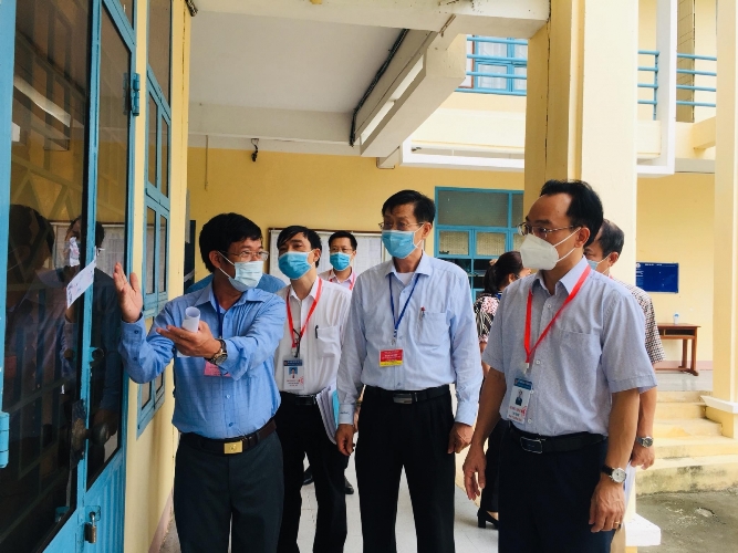 Thứ trưởng Bộ Giáo dục và Đào tạo Hoàng Minh Sơn kiểm tra công tác thi tốt nghiệp trung học phổ thông tại tỉnh Ninh Thuận_Ảnh: giaoducthoidai.vn