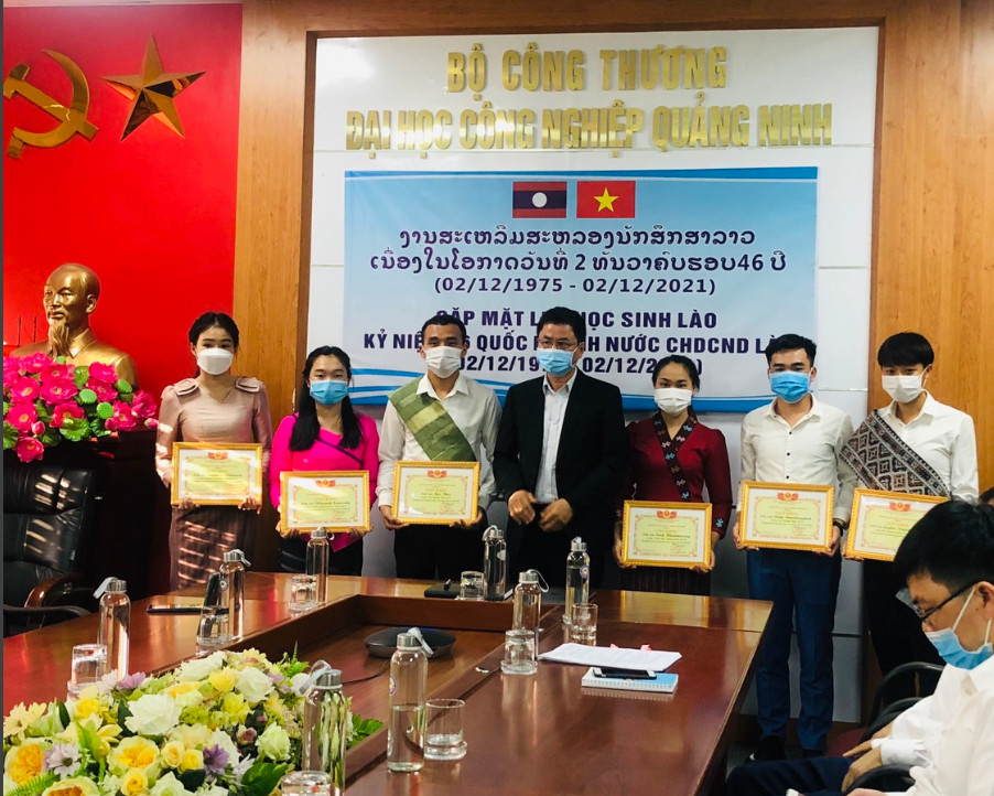 Cũng trong buổi gặp mặt nhân dịp quốc khánh nước Cộng hòa dân chủ nhân dân Lào, trường đại học Công nghiệp Quảng Ninh đã tặng những giấy khen ghi nhận những nỗ lực cố gắng của các bạn lưu học sinh trong các học tập và rèn luyện năm học 2020 – 2021.