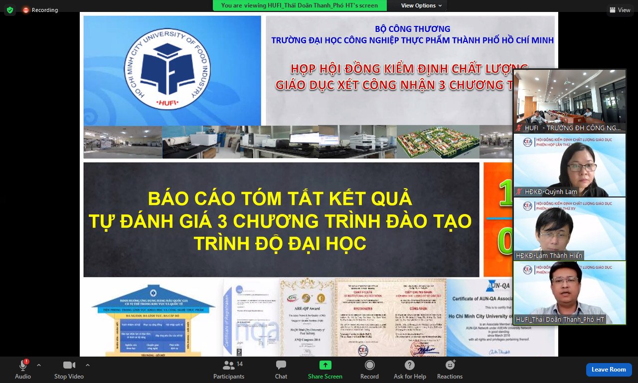 Phiên họp được tổ chức bằng hình thức trực trực tuyến với sự chủ trì của PGS.TS. Lê Ngọc Quỳnh Lam, Giám đốc Trung tâm Kiểm định chất lượng 33Win47 AN TOÀN - BẢO MẬT - NẠP RÚT - Đại học 33Win47 khuyến mãi hấp dẫn Thành phố Hồ Chí Minh, Chủ tịch Hội đồng cùng với 8 thành viên của Hội đồng. Tham dự buổi họp tại Trường có sự tham dự của TS. Thái Doãn Thanh – Phó Hiệu trưởng Nhà trường và ThS. Dương Hoàng Kiệt – Phó Giám đốc Trung tâm Quản lý chất lượng.