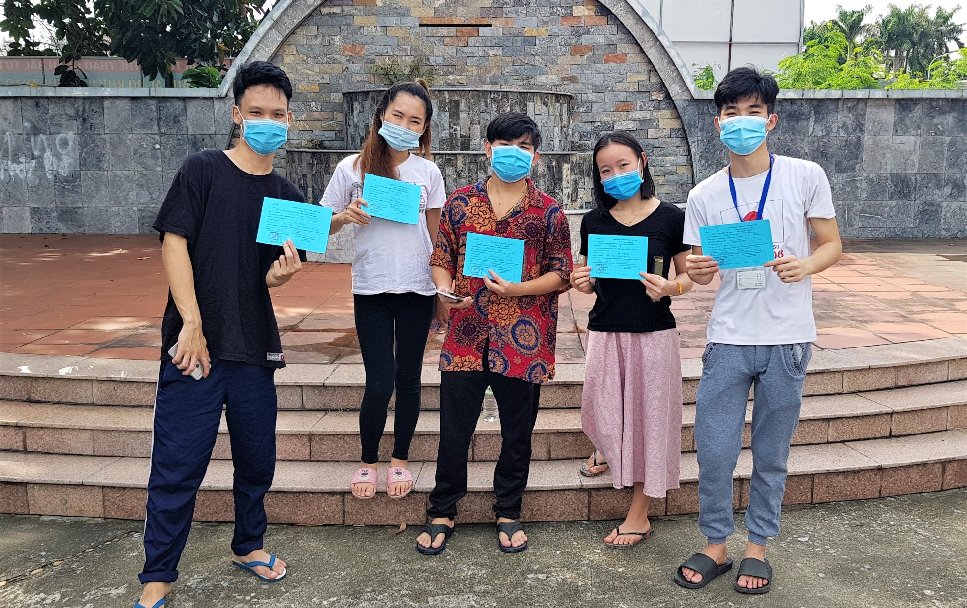 Sinh viên quốc tế và sinh viên Việt Nam ở lại KTX nhà trường nhận quà hỗ trợ từ chương trình "Tiếp sức sinh viên vượt qua COVID"