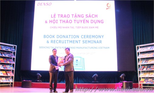 Thứ 6, 24/11/2017 | 00:00 A- A A+ | Lễ trao tặng sách và hội thảo tuyển dụng của Công ty TNHH DENSO Việt Nam tại Đại học Công nghiệp Hà Nội