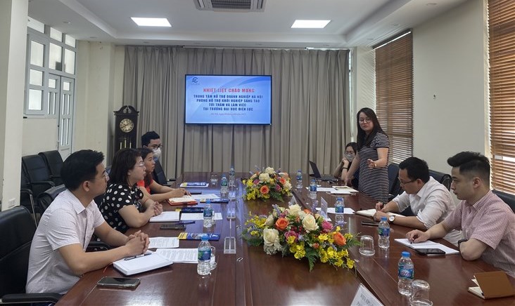 Mở đầu buổi làm việc, ThS. Chu Văn Tuấn - Phó Giám đốc Trung tâm đã giới thiệu khái quát về Trung tâm cũng như các hoạt động đang được triển khai. Trung tâm Hỗ trợ việc làm và khởi nghiệp – Trường Đại học Điện lực được thành lập tháng 9/2018 với mục tiêu tăng cường chất lượng công tác hỗ trợ việc làm và khởi nghiệp cho sinh viên trong trường.