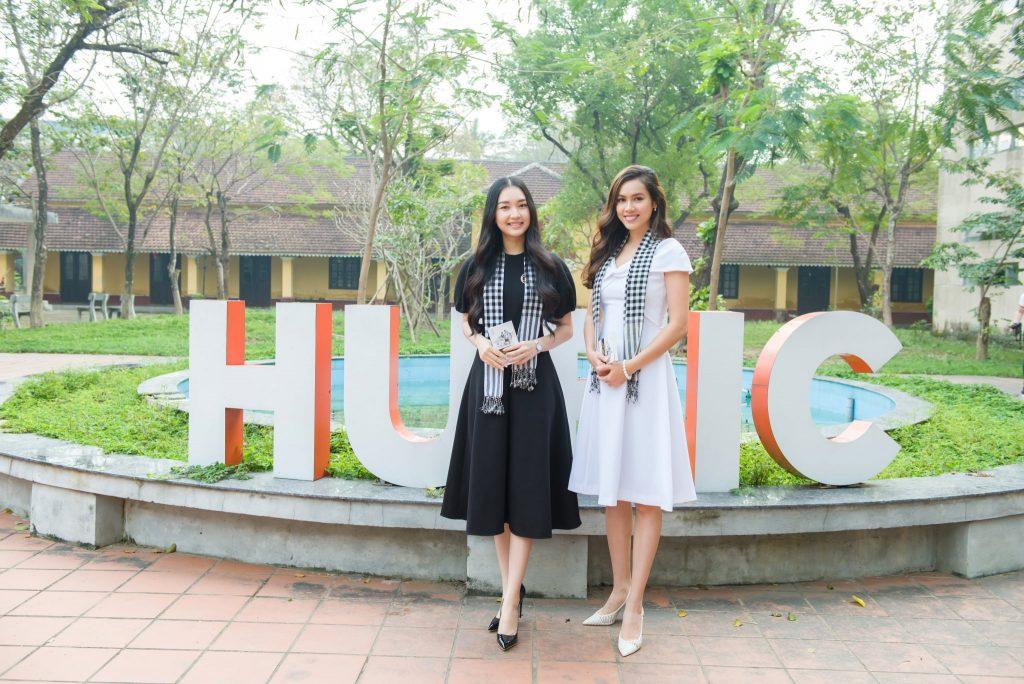 Á hậu Hoàng My, “Nàng thơ xứ Huế” Ngọc Trân chụp ảnh lưu niệm trong khuôn viên HueIC