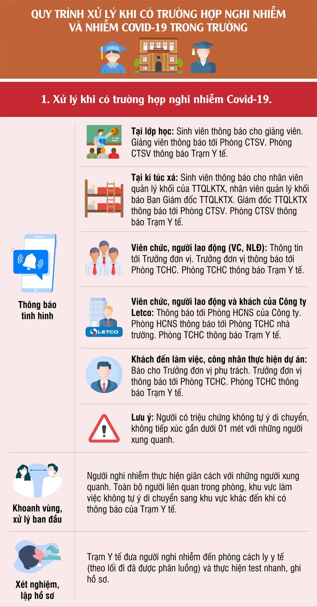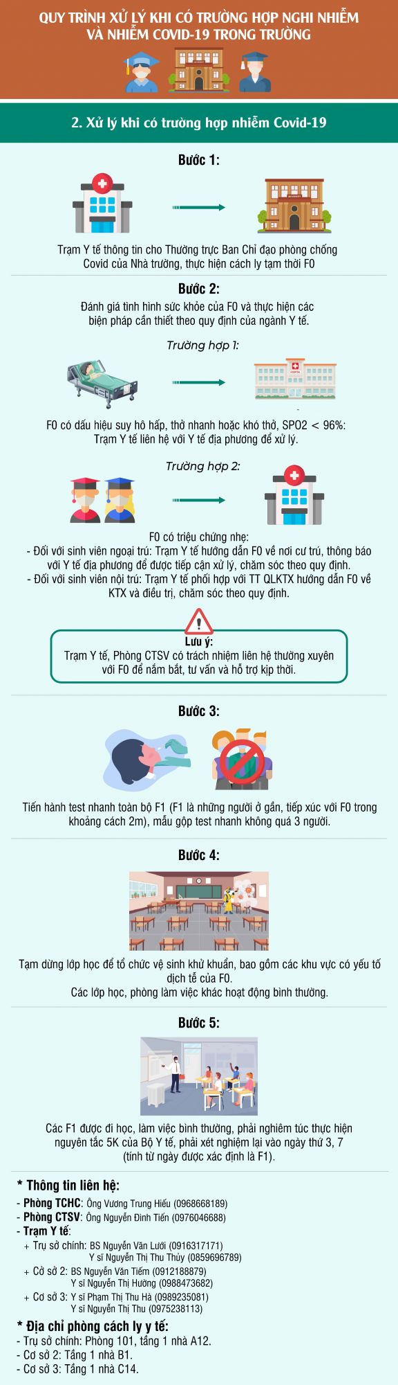 Quy trình xử lý khi có trường hợp nghi nhiễm và nhiễm COVID-19 trong trường Đại học Công nghiệp Hà Nội