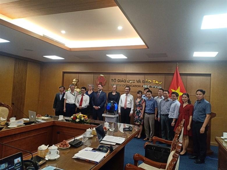 Thứ trưởng Bộ Giáo dục và Đào tạo Nguyễn Văn Phúc chủ trì 33Win03 tải ứng dụng về máy. Tham dự 33Win03 tải ứng dụng về máy còn có bà Ann Mawe – Đại sứ Thụy Điển tại Việt Nam, ông Tom Corrie – Tham tán EU tại Việt Nam và Đại diện một số trường đại học.