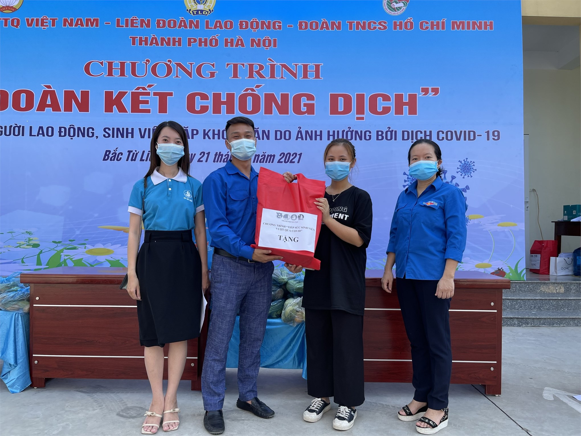 Trước tình hình diễn biến phức tạp của dịch COVID-19, Đoàn Thanh niên Đại học Công nghiệp Hà Nội đã phối hợp với Thành đoàn Hà Nội, Hội Sinh viên Việt Nam thành phố HN, Hội liên hiệp thanh niên Việt Nam thành phố Hà Nội trao 200 phần quà cho sinh viên đang ở lại KTX của trường thông qua chương trình “Tiếp sức sinh viên vượt qua Covid”; Phối hợp với Thành đoàn HN, Ủy ban Mặt trận tổ quốc VN TP Hà Nội trao 240 phần quà cho sinh viên ngoại tỉnh trọ tại Hà Nội.