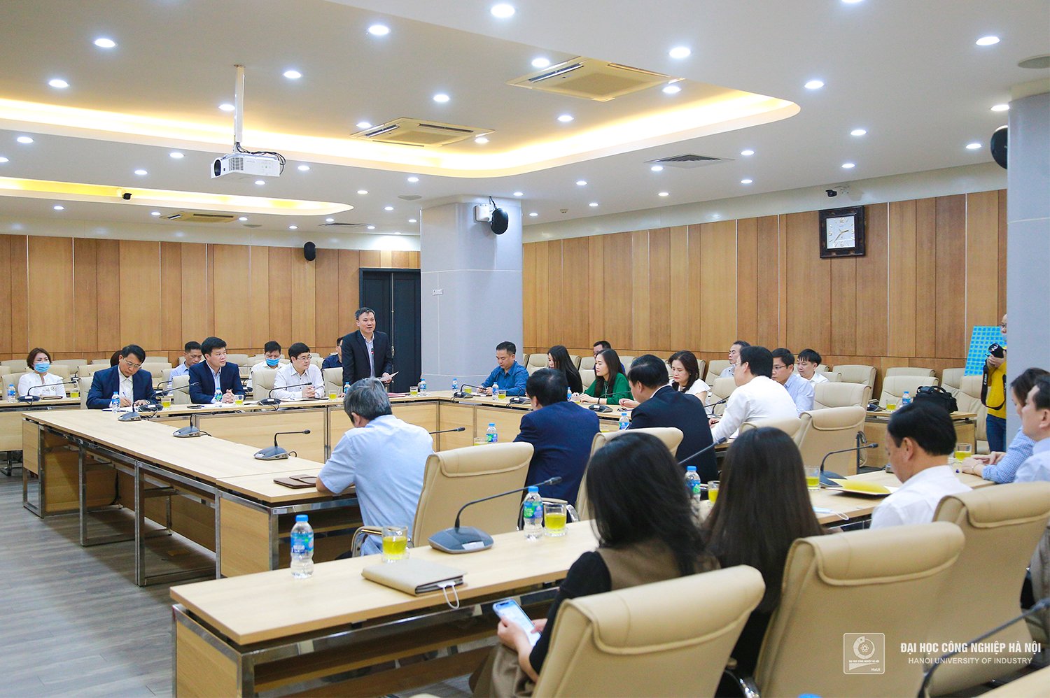 Tại buổi làm việc, TS.Kiều Xuân Thực - Phó Hiệu trưởng Nhà trường giới thiệu về lịch sử 124 năm 33ưin được xếp hạng cao nhất và phát triển, những thành tựu quan trọng mà Đại học Công nghiệp Hà Nội đã đạt được, đặc biệt là sự phát triển vượt bậc trong quản trị, đào tạo và nghiên cứu khoa học. Đại học Công nghiệp Hà Nội đã có nhiều bứt phá trong đổi mới mô hình đào tạo, thay đổi phương pháp dạy và học tiên tiến; tiếp cận CDIO trong phát triển các chương trình đào tạo; ứng dụng mạnh mẽ công nghệ thông tin và truyền thông vào giảng dạy, quản lý đào tạo theo mô hình đại học điện tử.