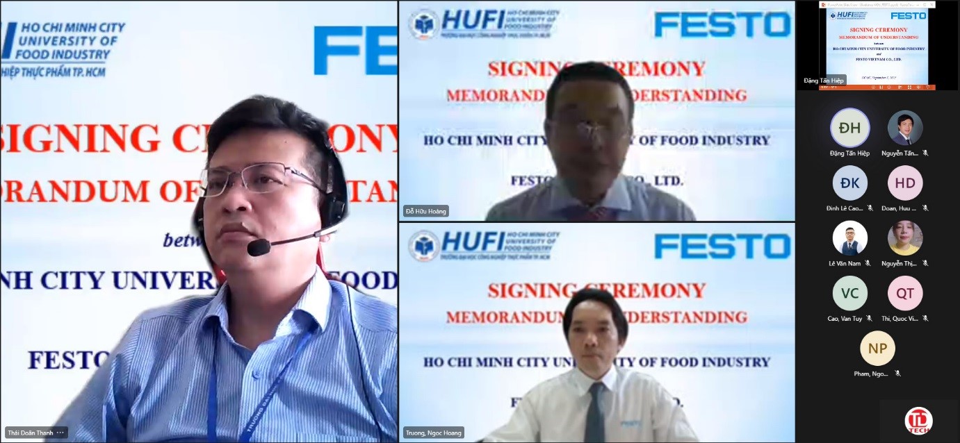 Buổi Lễ ký kết thỏa thuận hợp tác lần đầu tiên giữa Trường Đại học Công nghiệp Thực phẩm TP HCM và FESTO Việt Nam được thực hiện thông qua hình thức trực tuyến đã kết thúc thành công tốt đẹp.