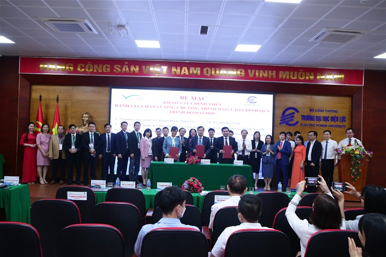Về phía trường Đại học Điện lực có PGS.TS Đinh Văn Châu - Quyền Hiệu trưởng Nhà trường; PGS.TS Lê Anh Tuấn - Chủ tịch Hội đồng trường; TS. Trương Nam Hưng - Phó Hiệu trưởng Nhà trường; TS. Nguyễn Lê Cường - Phó Hiệu trưởng Nhà trường; TS. Dương Trung Kiên - Phó Hiệu trưởng Nhà trường; cùng đại diện lãnh đạo các đơn vị trong Trường, các thành viên Hội đồng tự đánh giá, giảng viên các chương trình đào tạo.
