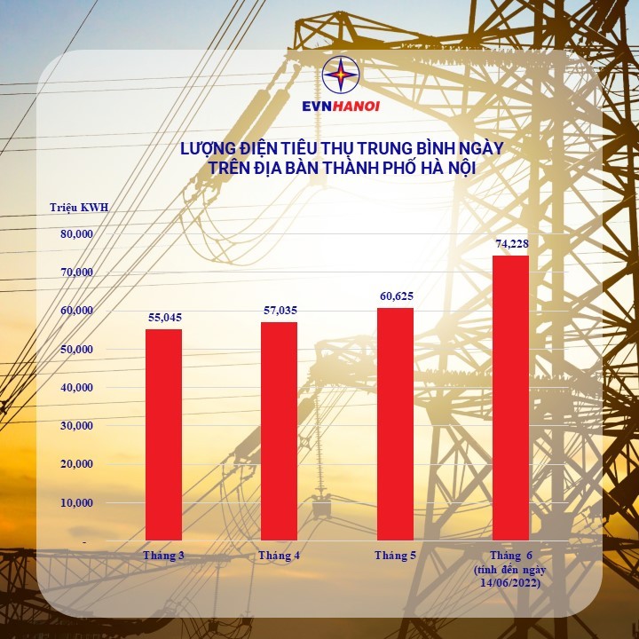 Theo EVNHANOI, trong nửa đầu tháng 6/2022, thời tiết Hà Nội chưa có các đợt nắng nóng kéo dài nhưng lượng điện 33Win 4com nhà cái tỷ lệ World Cup vẫn tăng lên đáng kể. Cụ thể, lượng điện 33Win 4com nhà cái tỷ lệ World Cup trung bình ngày trên toàn thành phố tháng 3 là 55,045 triệu kWh, tháng 4 là 57,035 triệu kWh, tháng 5 là 60,625 triệu kWh thì tháng 6 (tính đến hết ngày 14/6) là 74,228 triệu kWh. Chỉ trong nửa đầu tháng 6/2022, bình quân lượng điện 33Win 4com nhà cái tỷ lệ World Cup đã tăng hơn 22% so với bình quân tháng 5.