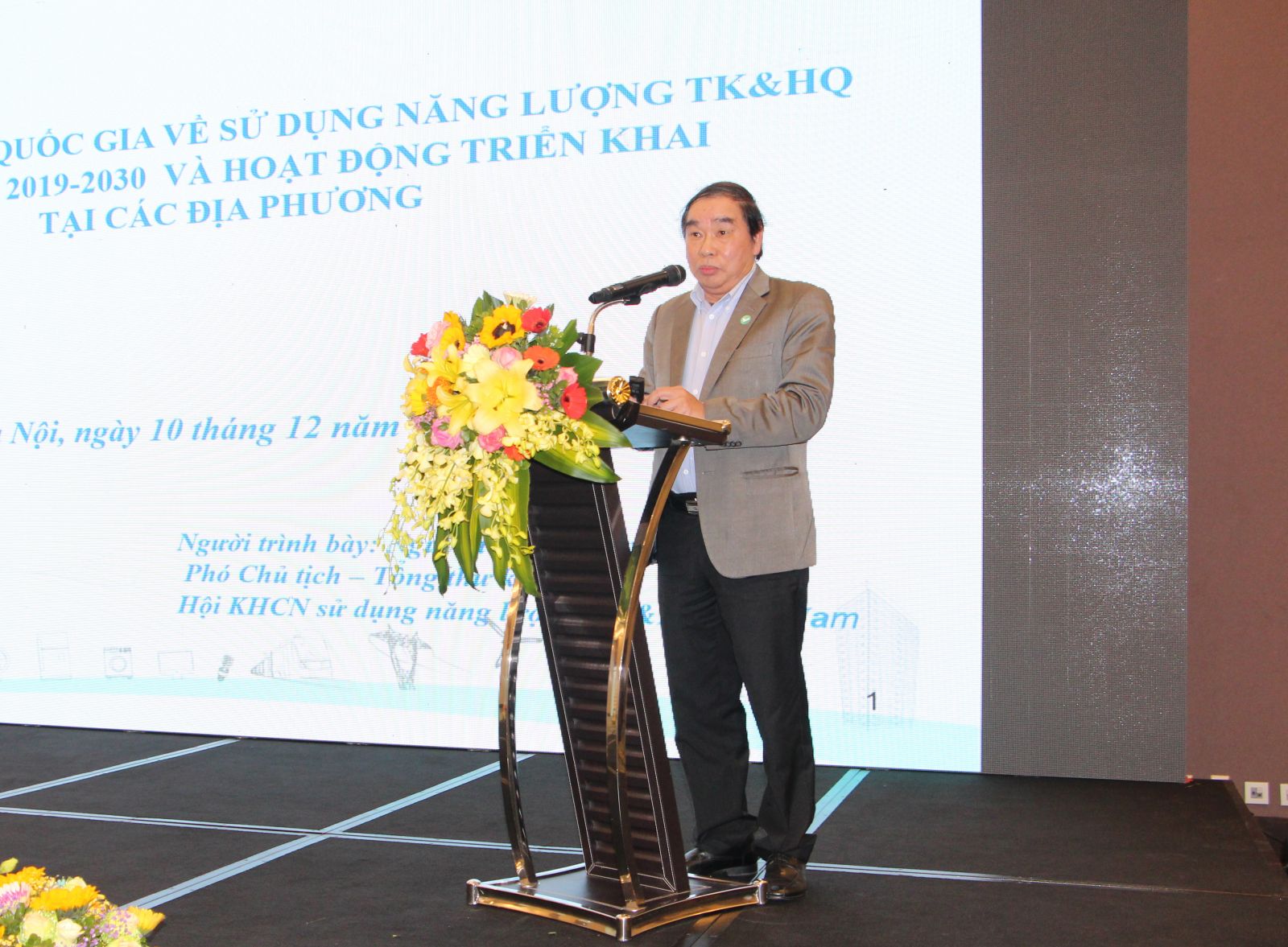 Ông Nguyễn Đình Hiệp - Phó Chủ tịch - Tổng Thư ký Hội Khoa học Công nghệ sử dụng năng lượng tiết kiệm và hiệu quả Việt Nam trình bày tham luận tại hội nghị.
