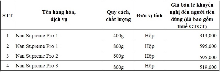 Công ty TNHH Nestle Việt Nam thông báo giá bán lẻ sản phẩm mới Đây là 04 sản phẩm mới của Công ty TNHH Nestle Việt Nam. Mức giá mới được thực hiện từ ngày 01/8/2021.