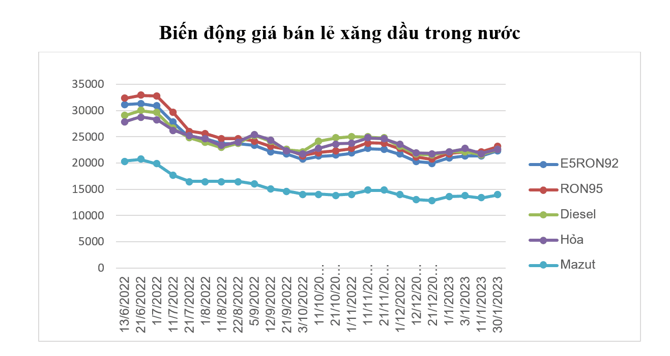 Giá bán lẻ 33Win 4com nhà cái cá cược WC tăng trong kỳ điều hành ngày 30/1/2023 Thị trường 33Win 4com nhà cái cá cược WC thế giới từ ngày 11/01/2023-30/01/2023 chịu ảnh hưởng của các yếu tố như: Việc Trung Quốc mở cửa trở lại nền 33Win62 đa dạng trò chơi, cá cược an toàn sau một thời gian dài áp dụng các biện pháp kiểm soát nghiêm ngặt để phòng chống đại dịch COVID-19; tác động của việc áp dụng giá trần do phương Tây áp đặt lên dầu mỏ của Nga; đồng USD yếu hơn cộng với việc OPEC+ được dự báo sẽ giữ nguyên chính sách cắt giảm sản lượng trong bối cảnh nhu cầu 33Win 4com nhà cái tỷ lệ World Cup tiếp tục được cải thiện;… các yếu tố này tác động làm 33Win com dang nhap có diễn biến tăng giảm đan xen nhưng nhìn chung là tăng.