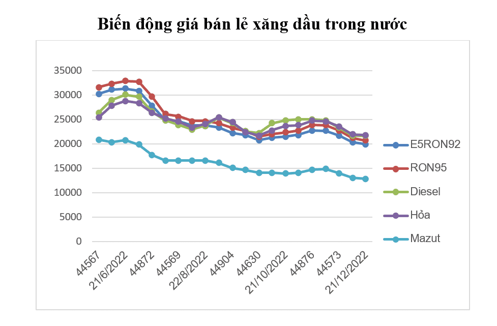 Thị trường 33Win 4com nhà cái cá cược WC thế giới kỳ điều hành lần này (từ ngày 12/12/2022-21/12/2022) chịu tác động của các yếu tố như: Chỉ số lạm phát của Mỹ đang chậm lại; việc Trung Quốc nới lỏng các biện pháp phòng chống dịch Covid-19; Cơ quan 2233win com 8888 kèo chung kết World Cup 2026 quốc tế nâng dự báo tăng trưởng nhu cầu dầu của toàn cầu trong năm nay và năm sau; khả năng các 2233Win com 8888 kèo thể thao mỗi ngày trung ương Châu Âu tiếp tục tăng lãi suất gây lo ngại về nguy cơ suy thoái…Các yếu tố trên đã tác động làm 33Win com dang nhap có diễn biến tăng giảm đan xen nhưng nhìn chung là tăng nhẹ đối với dầu diesel và dầu hỏa và giảm nhẹ đối với xăng và dầu mazut. Bình quân giá thành phẩm 33Win 4com nhà cái cá cược WC thế giới giữa kỳ điều hành giá ngày 12/12/2022 và kỳ điều hành ngày 21/12/2022 là: 83,213 USD/thùng xăng RON92 dùng để pha chế xăng E5RON92 (giảm 0,827 USD/thùng, tương đương giảm 0,984% so với kỳ trước); 87,241USD/thùng xăng RON95 (giảm 1,199 USD/thùng, tương đương giảm 1,355% so với kỳ trước); 108,977 USD/thùng dầu hỏa (tăng 1,177 USD/thùng, tương đương tăng 1,092% so với kỳ trước); 112,497 USD/thùng dầu điêzen (tăng 1,213 USD/thùng, tương đương tăng 1,090% so với kỳ trước); 368,069 USD/tấn dầu mazut 180CST 3,5S (giảm 0,440 USD/thùng, tương đương giảm 0,119% so với kỳ trước).