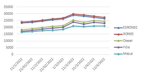 - Dầu mazut 180CST 3.5S: không cao hơn 20.929 đồng/kg (ổn định so với giá bán lẻ hiện hành).